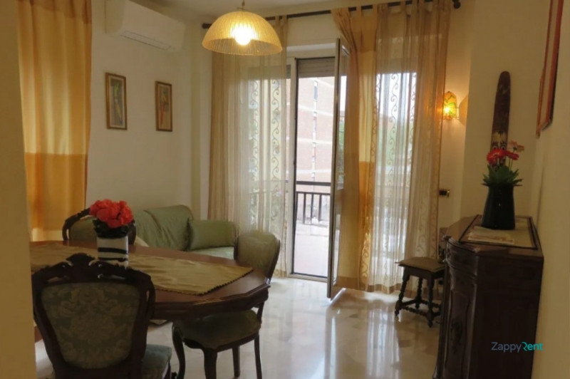 TRILOCALE MQ.110 ARREDATO ARIA CONDIZIONATA. Tre camere cucina/soggiorno, bagno, ripostiglio, balcone. Euro 2100 mensili spese comprese. Ascensore e portineria. Libero subito.