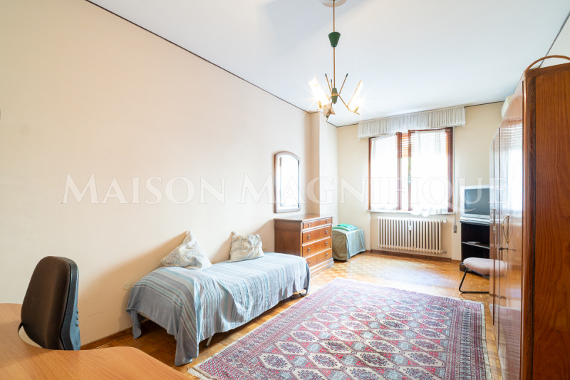 Inoltre la camera da letto ospita una zona studio o come è presente attualmente una zona letti, comoda per una coppia con figli o per ospitare parenti o amici.