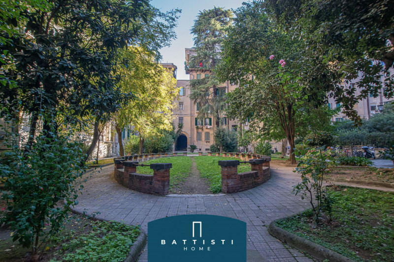 L'appartamento in oggetto è attualmente composto di tre camere, una cabina armadio, doppi servizi (entrambi con finestra), un ripostiglio, balcone, un delizioso terrazzo con splendido terrazzo sovrastante accessibile da una comoda scala interna. L'appartamento è completamente ristrutturato e ridifinibile secondo le esigenze dell'acquirente. Tra le rifiniture: scale interne in travertino con ringhiera d'epoca restaurata, parquet in rovere grezzo 5 mm, infissi in PVC, zanzariere, grate, persiane blindate, porte in legno pregiato. Non sono presenti spese condominiali.