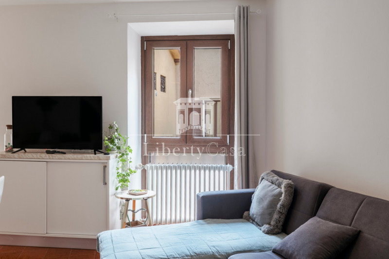 L’appartamento è situato nel cuore del centro storico, alle spalle del Palazzo della Magnifica Patria; dal caratteristico vicolo si accede nell’abitazione dove si presenta lo spazioso soggiorno con camino. Le due porte finestre con affaccio verso una delle suggestive piazze della cittadina, danno accesso al giardino esclusivo.