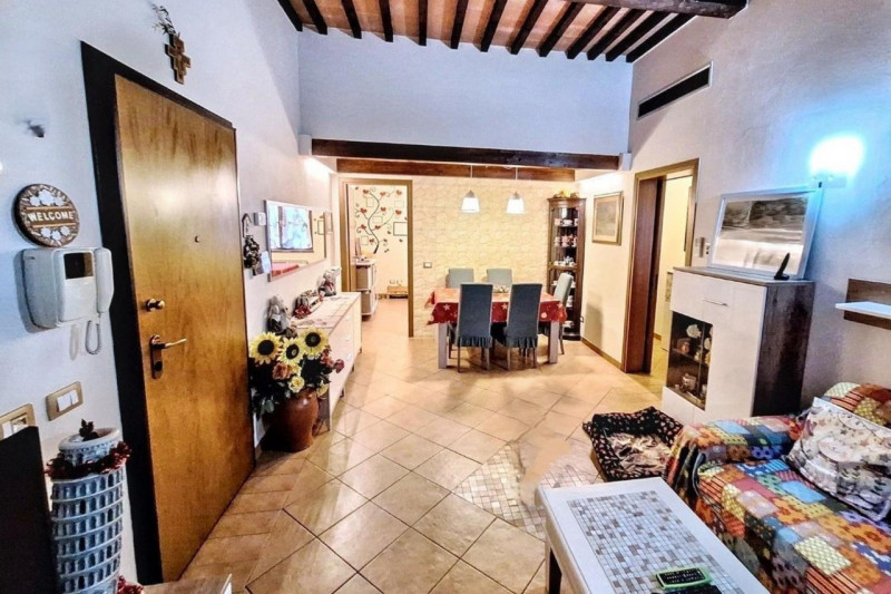 Ottimo APPARTAMENTO con ingresso indipendente in stile rustico toscano con travi travicelli e cotto, composto da soggiorno con camino, cucinotto, ripostiglio, camera matrimoniale e bagno, oltre posto auto e giardino. Classe E IPE 127. TRATT. FOTO