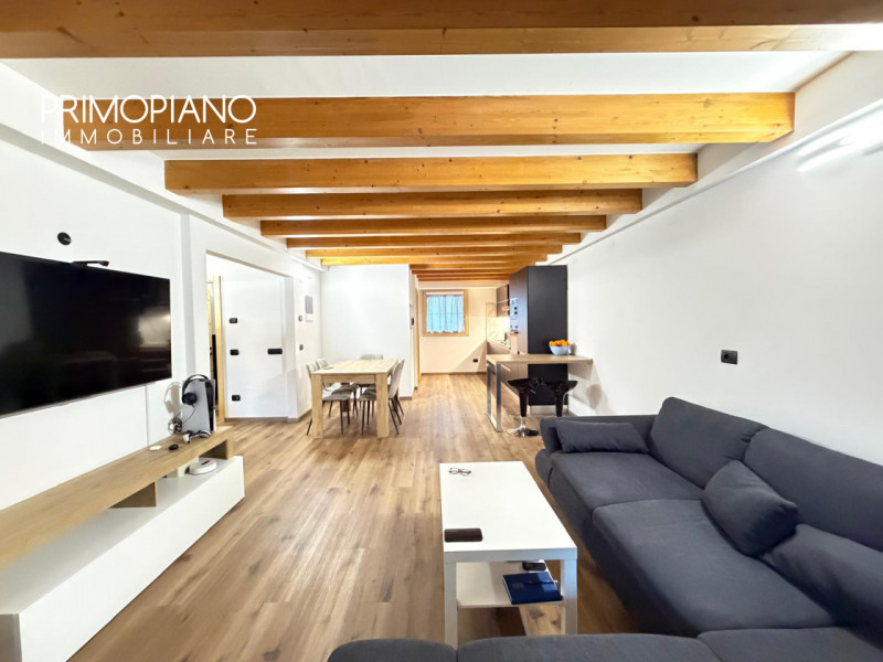 L'appartamento offre una confortevole zona giorno open space esposta a ovest, ideale per godere di luce naturale fino al tramonto.