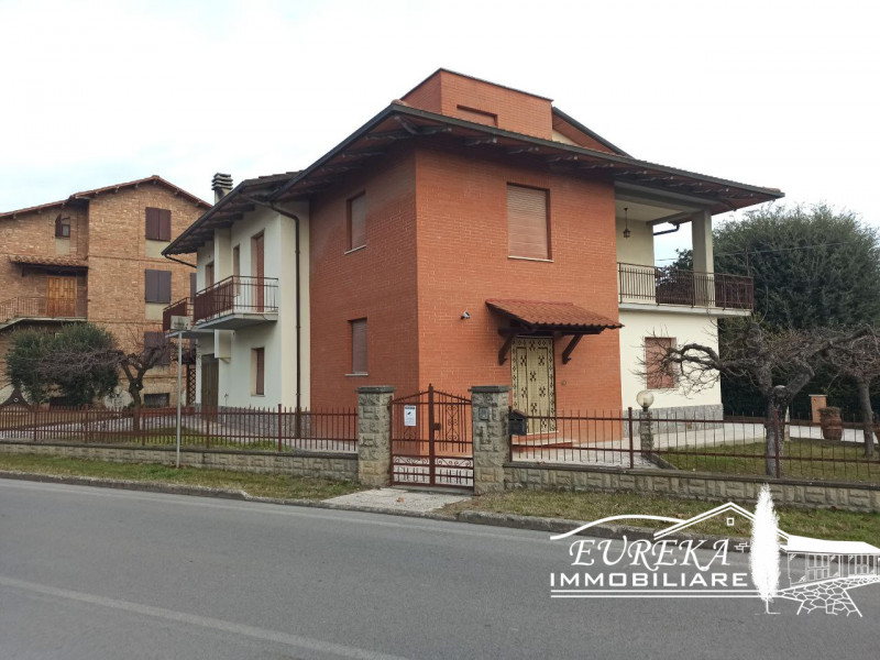 I LOGGI Esclusiva porzione di villa bifamiliare, immersa nel verde delle splendide campagne umbre; la posizione di forte interesse consente di vivere in un'oasi di pace a pochi passi dalle mura della città di Perugia. Un ulteriore plus è rappresentato dalla via di accesso, una strada privata ad uso esclusivo di chi la risiede. Immobile edificato recentemente con ogni tipo di comfort e una splendida vista su Assisi, capace di offrire ampi spazi sia interni che esterni; completa la proprietà uno splendido giardino pianeggiante e comodo per qualsiasi attività all'aperto, impreziosito da aiuole fiorite e da una piscina fuori terra confinante con un'elegante veranda coperta dove poter vivere in totale privacy e relax momenti con la famiglia e amici. I materiali utilizzati sono di assoluto pregio in ogni piano, compreso lo splendido tetto in legno a vista da osservare nel piano notte; inoltre, da sottolineare in ultimo ma non di meno importanza, l'immobile gode di un'eccellente esposizione solare. Entrando all'interno, si viene accolti da un ampio soggiorno molto luminoso e accogliente dove si può beneficiare di una stufa a legna nei periodi freddi, l'ambiente è arricchito da ampie vetrate che alloggiano su una veranda coperta e chiusa, un piccolo giardino d'inverno; la zona giorno è infine completata da una moderna cucina a vista. Sempre al piano d'ingresso troviamo inoltre un esteso portico, un bagno dotato di finestra e una camera matrimoniale che alla necessità potrebbe trasformarsi in uno studio. Proseguendo su di una copiosa scala che collega i tre piani si giunge nella zona notte con vista sull'assisano: nel disimpegno si trova un terrazzo fruibile, tre camere da letto di cui due matrimoniali e dotata ciascuna di un piccolo balcone, doppi servizi entrambi con finestra di cui uno en suite con vasca privata, nella camera principale. Tutti i soffitti con travi a vista donano ambienti caldi e signorili. Al piano seminterrato, anch'esso finestrato, troviamo un ampio salone multiuso, un bagno con doccia idromassaggio e due vani pluriuso dove si potrebbe pensare ad un locale palestra o hobby. Il piano seminterrato conduce con una porta al garage di 55 mq, con possibilità di posteggiare fino a tre auto, munito di portone blindato, porta automatizzata e cancello elettrico. L'IMMOBILE RAFFIGURA UNA SOLUZIONE IDEALE PER VIVERE NEL SILENZIO E NELL'ESCLUSIVITÀ .