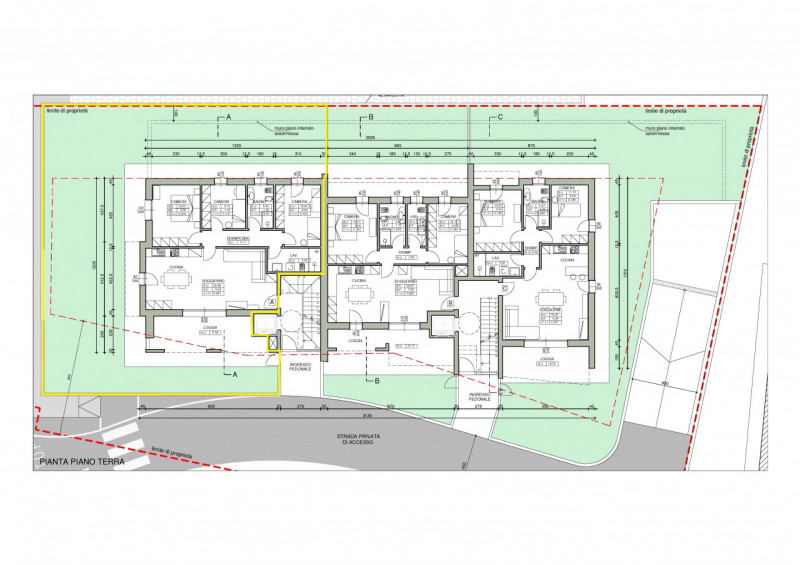 La palazzina è composta da due appartamenti al piano terra, 2 appartamenti al piano primo ed un attico all’ultimo. piano.