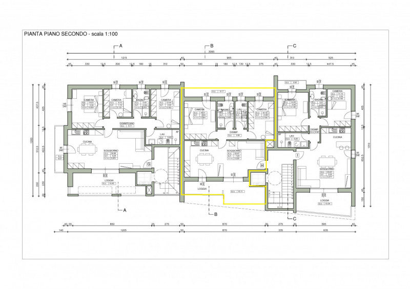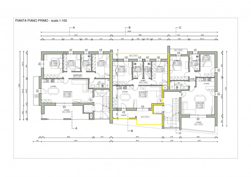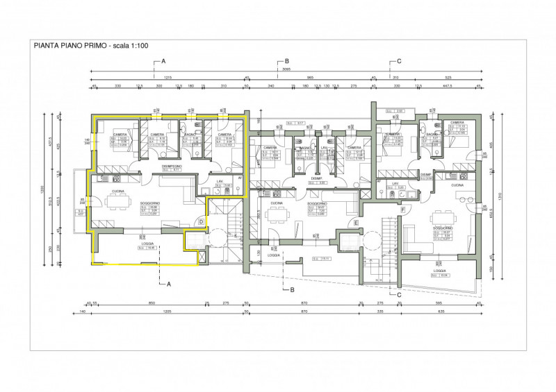 L’appartamento oggetto di vendita si trova al piano primo e si compone di una ampia e luminosa zona giorno tre camere 2 bagni oltre ad un ampio terrazzo ed al posto auto