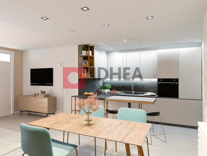 L'appartamento è così distribuito: ingresso, soggiorno e cucina separata abitabile con penisola per complessivi 50 mq. di zona giorno.