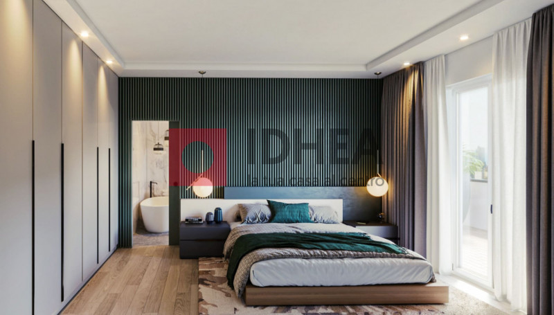 ingresso su luminoso soggiorno con affaccio tramite ampie vetrate sul terrazzo, un comodo disimpegno ci accompagna alla zona notte dove troviamo la grande camera matrimoniale con bagno privato e accesso diretto al terrazzino e un'ulteriore camera di 15 mq. Completano la proprietà un bagno finestrato e un locale lavanderia.