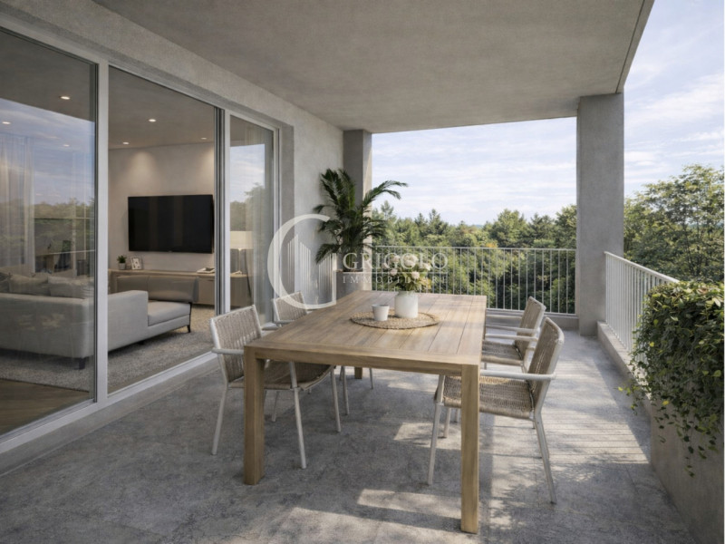 La zona notte è composta da due camere da letto confortevoli e ben studiate, affiancate da due bagni completi caratterizzati da linee pulite e materiali di qualità. L’appartamento dispone inoltre di un terrazzo abitabile, perfetto per creare un angolo all’aperto dedicato ai momenti di relax, alle colazioni estive o a una piccola area verde privata.