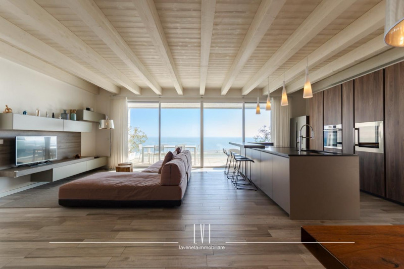 L’ascensore privato entra direttamente in casa, aprendosi su una luminosa zona giorno dove le ampie vetrate incorniciano l’orizzonte e regalano una vista mare impareggiabile. Gli spazi sono armoniosi e raffinati, ideali per accogliere famiglia e amici in un’atmosfera di comfort ed esclusività.