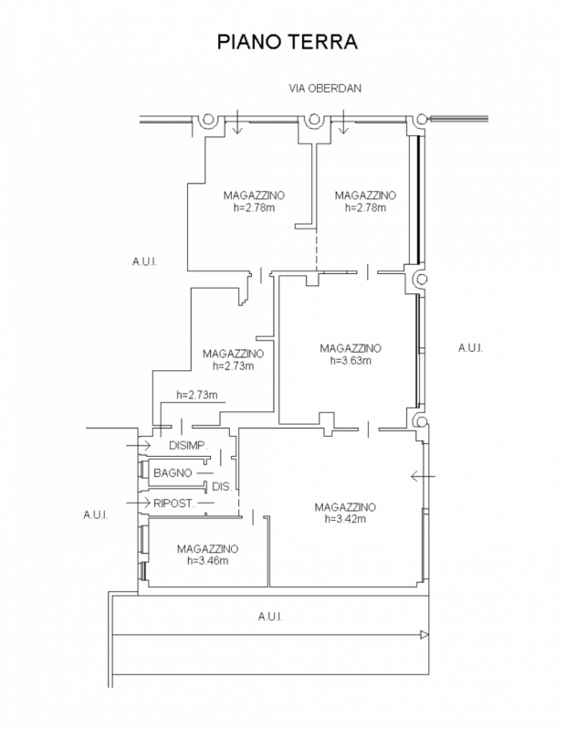 L'immobile, attualmente adibito a ufficio, è composto da un unico ambiente diviso con tramezzi i cartongesso, oltre ad antibagno, bagno e locale ripostiglio/archivio.
