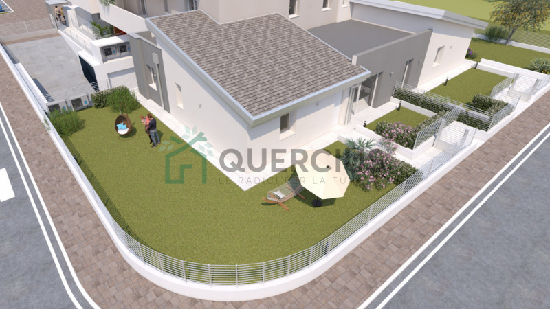 Tutte le case si sviluppano su un UNICO PIANO, godono di ingresso indipendente, di un giardino privato, ed in un ampio garage che può contenere fino a tre automobili. Ogni abitazione potrà essere personalizzata nelle finiture, sarà dotata di riscaldamento a pavimento con pompa di calore, tapparelle elettriche e Fotovoltaico da 3,00 KW ampliabile.