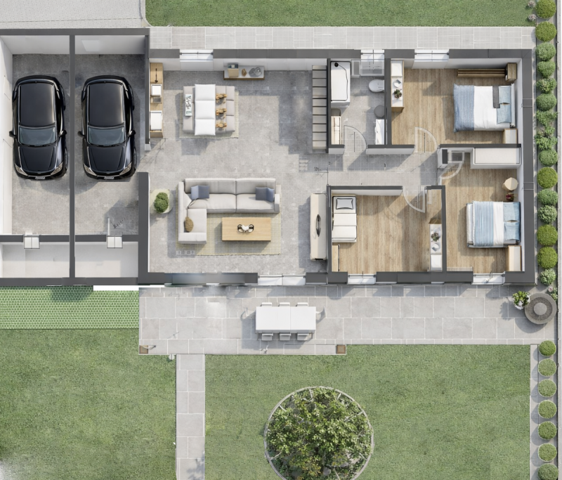 Un ulteriore vantaggio è la possibilità di realizzare una dependance autonoma al piano terra: un'opzione eccellente per creare uno studio personale o un'accogliente area per gli ospiti.