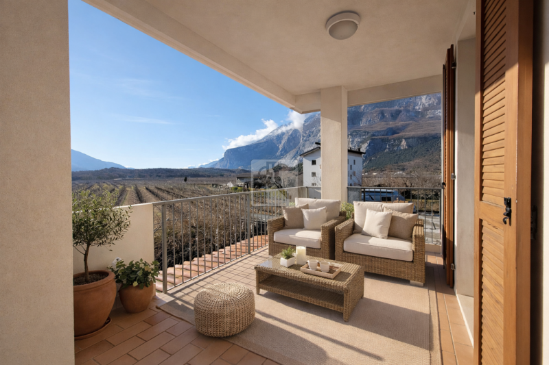 La superficie commerciale è pari a 99 mq (74,8 mq netti) e lo stato manutentivo è eccellente: ambienti luminosissimi grazie alle ampie vetrate che regalano splendide viste sulle vigne circostanti e sulle maestose montagne. La zona giorno open space comprende soggiorno cucina con angolo pranzo su misura affacciato sul verde; il corridoio conduce alla camera matrimoniale, alla camera singola ed al bagno finestrato moderno. Il valore aggiunto è rappresentato dal grande terrazzo ideale per momenti di relax all'aperto.