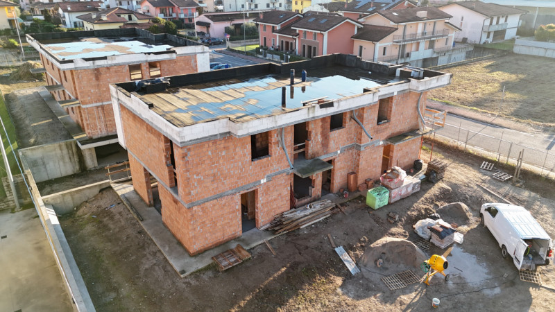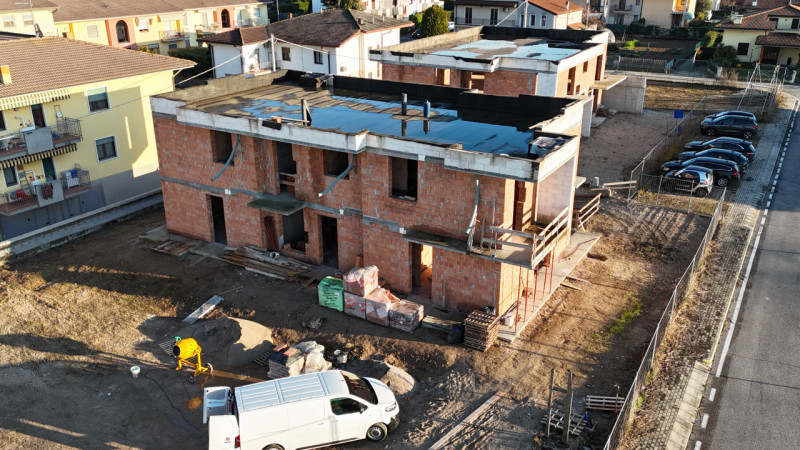 La casa sarà dotata di serramenti in PVC con triplo vetro camera basso emissivi, impianto di ventilazione meccanica controllata (VMC) già installato, isolamento acustico tra le unità abitative, riscaldamento a pavimento in pompa di calore (senza utilizzo del gas), impianto fotovoltaico da 3 kW, tapparelle motorizzate.