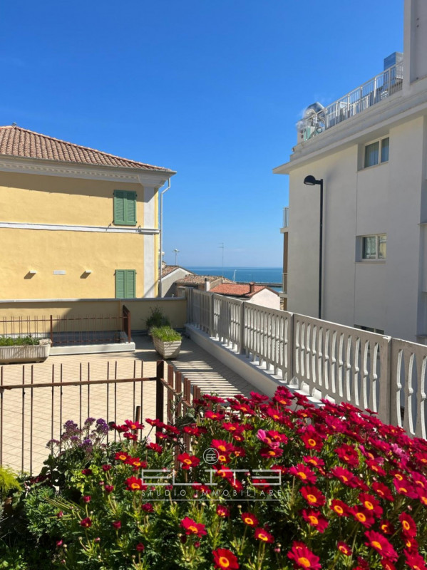 Si tratta di una soluzione con ingresso indipendente e un terrazzo su 4 lati, il che lo rende molto luminoso e arioso. L'abitazione è ben strutturata, con un soggiorno che include una cucina a vista, una camera da letto e un bagno al piano principale, mentre al piano superiore mansardato si trova un'altra camera con balcone panoramico con vista mare/Monte Conero, una cameretta/studio e un altro bagno.