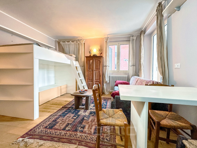 Situato al primo piano di un edificio riqualificato, l’appartamento si estende su una superficie ben ottimizzata di 40 mq.