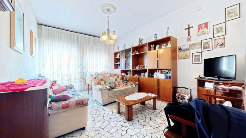 L’ingresso si apre sulla spaziosa zona giorno, caratterizzata da ambienti ariosi e ben distribuiti. La sala da pranzo è collegata in modo diretto alla cucina, creando un ambiente conviviale e funzionale. Alle spalle del soggiorno trovano posto una camera matrimoniale, una camera singola, un bagno finestrato con box doccia e un bagno di servizio.