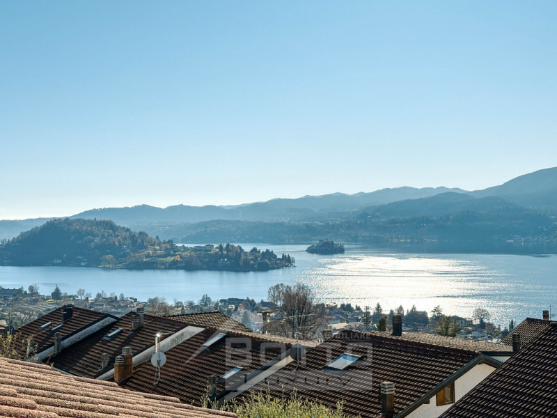 Questa casa semi indipendente in vendita ad Arola, gode di una vista spettacolare sulle montagne ed il lago d'Orta, visibile anche dal suo giardino privato.