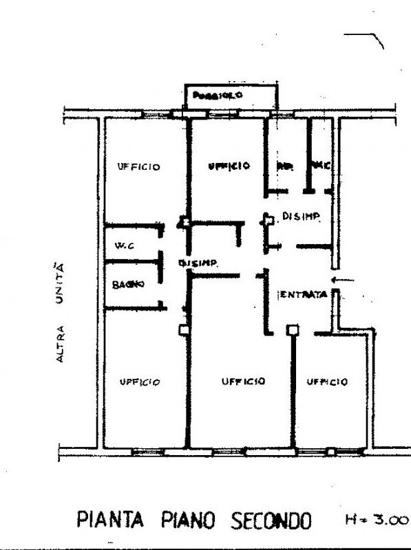 ufficio di 183 mq. calpestabili ad euro 1.000 mese più iva. Primo piano senza ascensore.