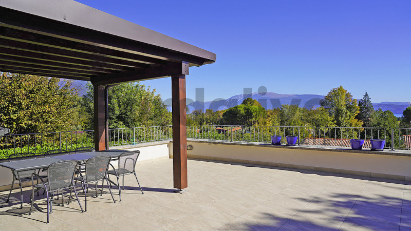 Soiano del Lago , a pochissimi minuti dal rinomato Garda Golf e in una via chiusa priva di passaggio ,villa indipendente su un lotto di 1.200 mq con totale vista panoramica sul lago e immersa nel verde .